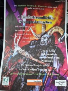 Sa, 09.11.2024 Hausmannstätten (120 Perchten), Frohnleiten (300 Perchten), Gleinstätten (32 Gruppen), Ottendorf an der Rittschein, Rottenmann (35 Gruppen – 5/7 € Eintritt ), Fohnsdorf (400 Krampusse), Ehrenhausen (550 Krampusse)