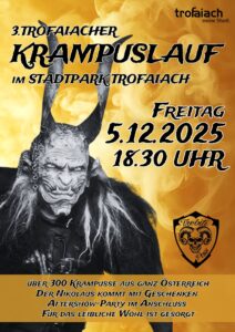 Fr, 7.11.2025 – 2. Krampuslauf der FPÖ Deutschlandsberg-Frauental im Rathauspark Deutschlandsberg. Beginn: 17:00 Uhr. Mehrere Krampusgruppen erwarten euch!