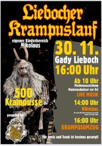 So, 17.11.2024 Geistthal-Söding (500+ Krampusse), Leibnitz (30 Gruppen – 400 Perchten), Lebing (20 Gruppen – Weiz)