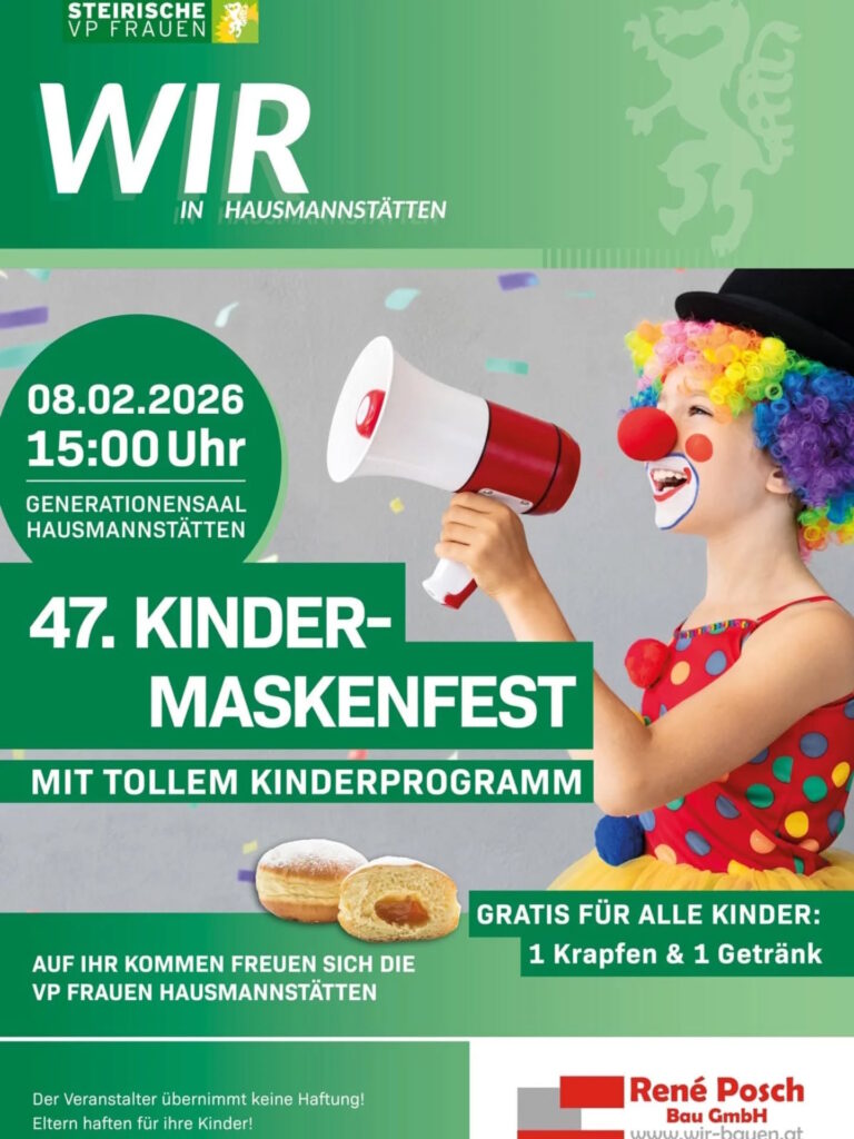 Kindermaskenfest VP Hausmannstätten ab 15 Uhr