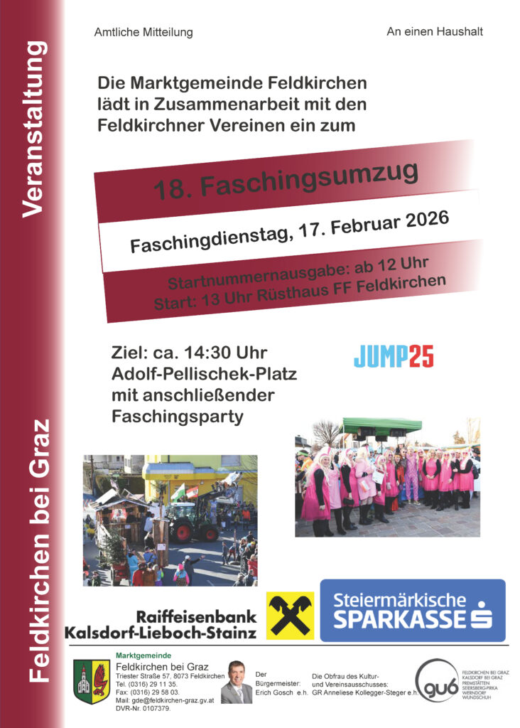 18. Faschingsumzug in Feldkirchen bei Graz Start 13 Uhr