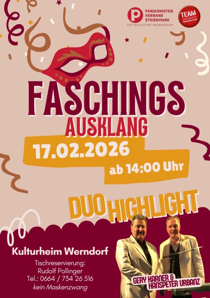 Faschingsausklang in Werndorf ab 14 Uhr (SPÖ & PV)