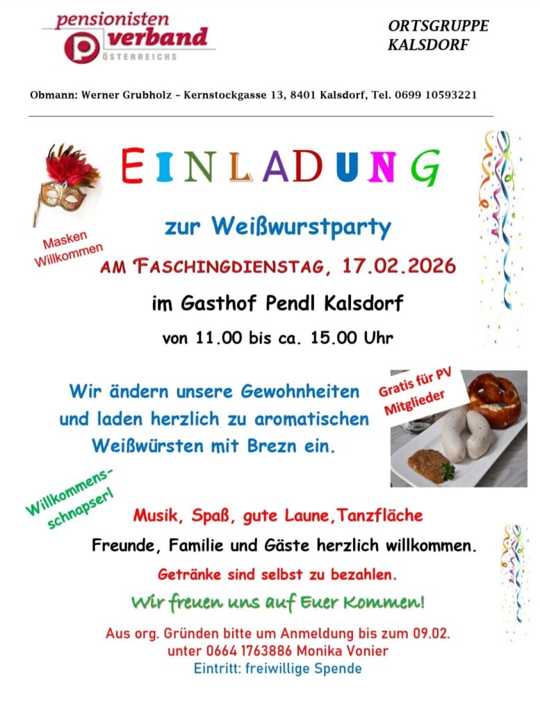 Weißwurstparty des Pensionistenverband Kalsdorf im GH Pendl 11-15 Uhr
