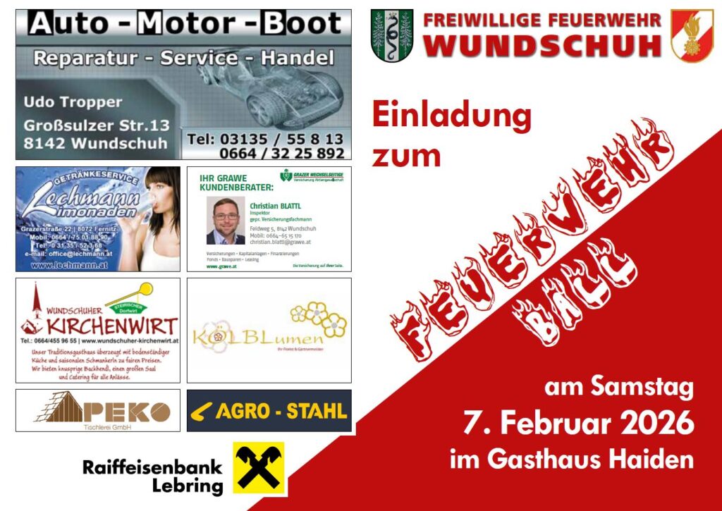 Am 10. Jänner 2026 lädt die Freiwillige Feuerwehr Ligist zum traditionellen Ball unter dem Motto „Uniform trifft Tracht“ ein.