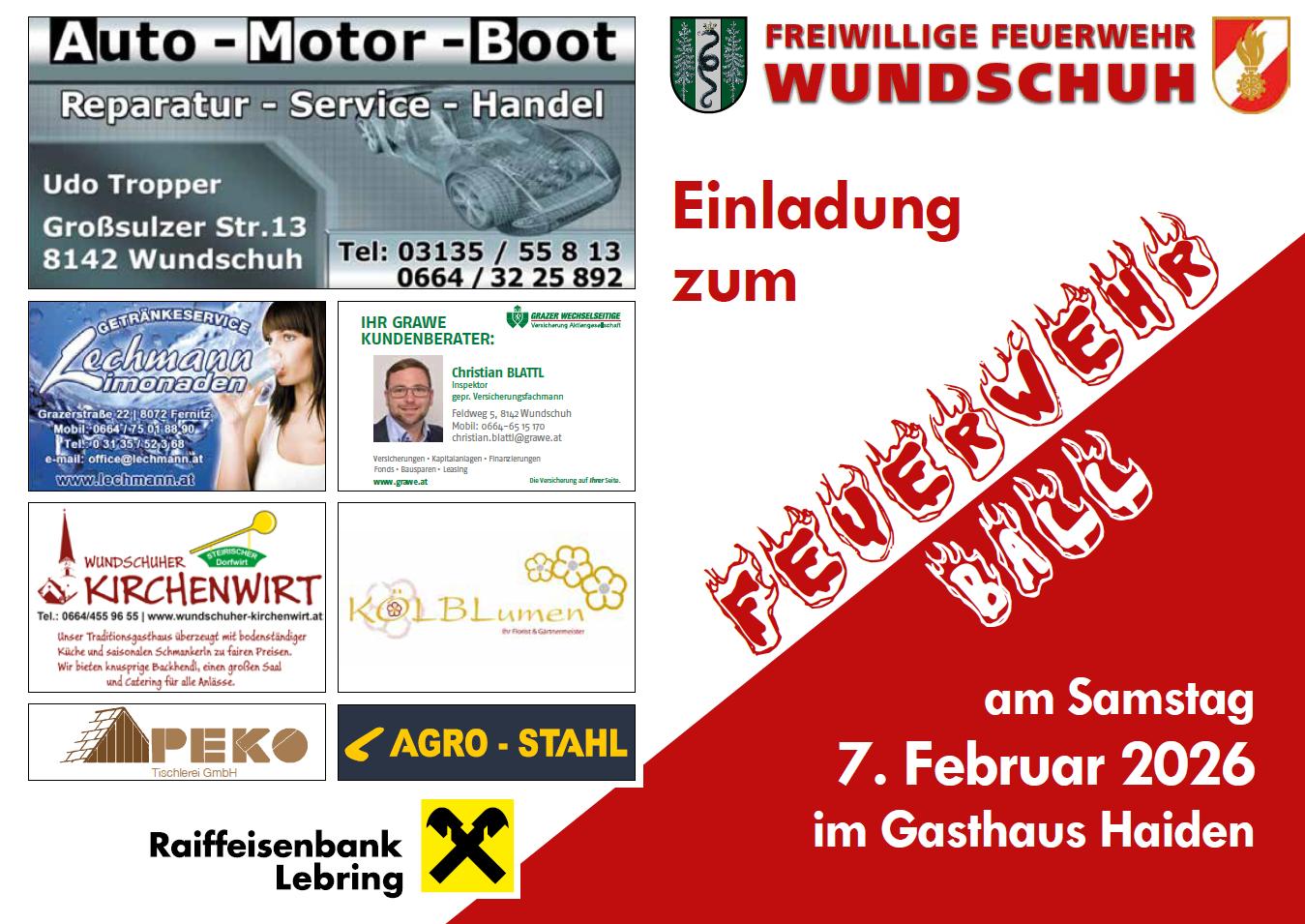 Wir möchten Sie recht herzlich zu unserem Feuerwehrball in den Festsaal der Marktgemeinde Dobl–Zwaring einladen!
