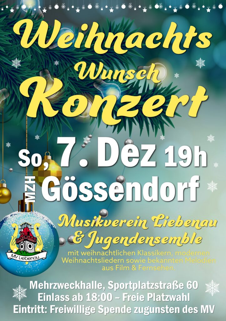 Die Marktgemeinde Gössendorf lädt Sie auch in diesem Jahr wieder herzlich zum Gössendorfer Christkindlmarkt am Samstag, 29. November 2025 und 6. Dezember 2025 jeweils ab 14:00 Uhr beim Sportzentrum Gössendorf ein.