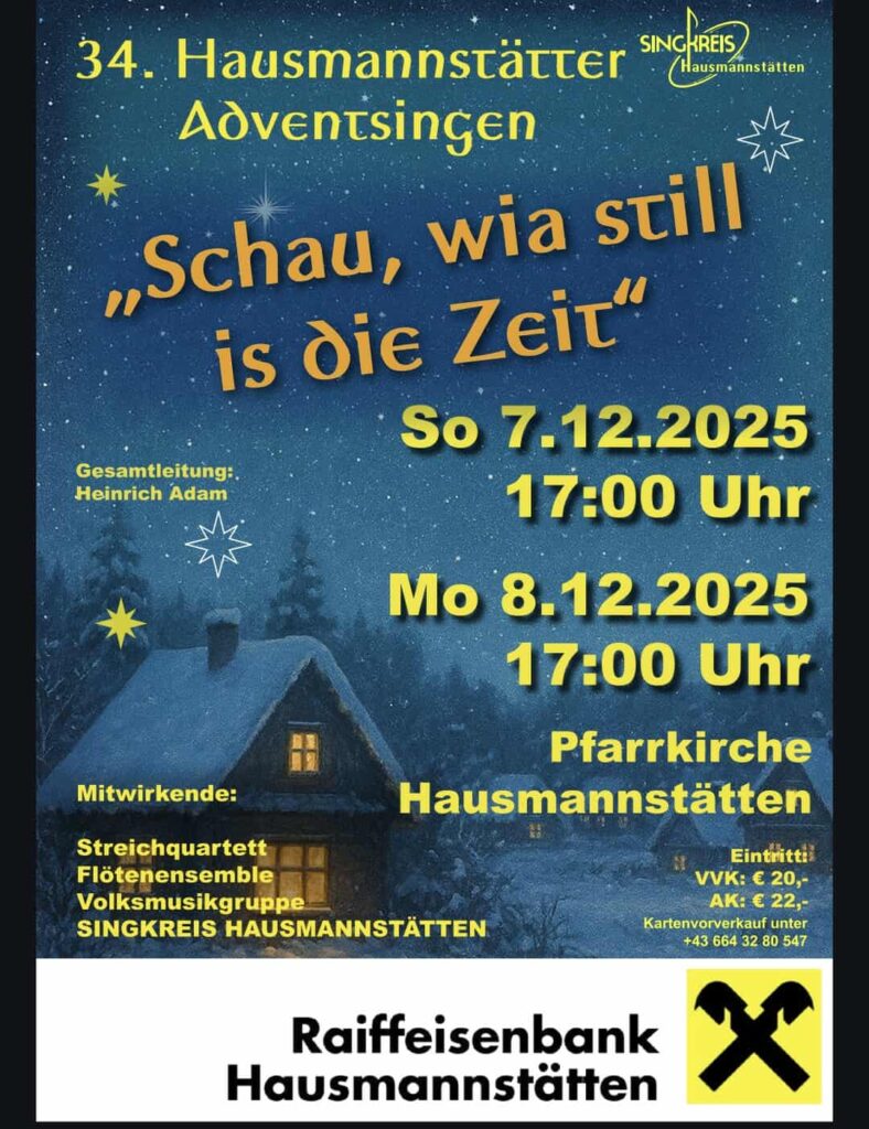 Nachdem die Grazer Weihnachtsmärkte und die Grazer Winterwelt geöffnet haben, gibt es am ersten Adventwochenende zahlreiche weihnachtliche und winterlichen Angebote in der Region außerhalb von Graz. In Gössendorf, Fernitz-Mellach und Raaba-Grambach starten die Christkindlmärkte. Die Eislaufplätze in Kalsdorf und Raaba-Grambach werden eröffnet und gleich mehrere Konzerte warten.