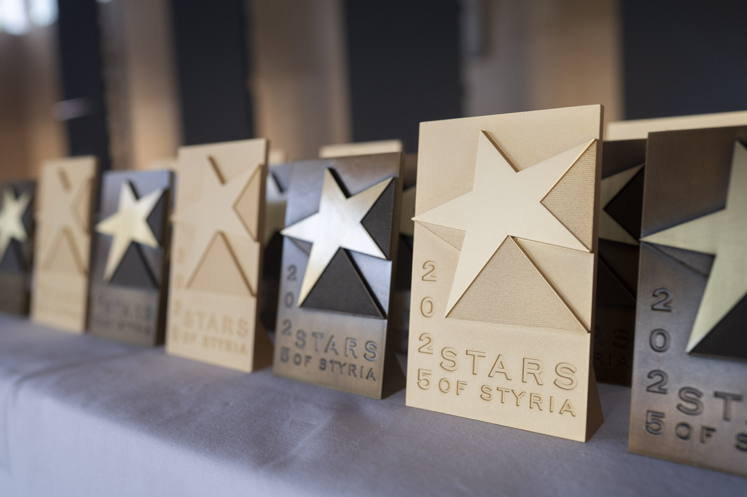Lehrlinge, die ihre Lehrabschlussprüfung mit Auszeichnung ablegen, werden gemeinsam mit ihren Ausbildungsbetrieben und mit Absolventen von Meister- und Befähigungsprüfungen jährlich als sogenannte „Stars of Styria“ geehrt. Am Dienstag, dem 13. Mai 2025, wurden in Graz-Umgebung die Trophäen und Urkunden im feierlichen Rahmen überreicht: rund 27 Meister, 37 Lehrabsolventen und 27 Ausbildungsbetriebe nahmen mit strahlenden Gesichtern ihren Stern und ihre Urkunde auf der Bühne in der im bis zum letzten Platz gefüllten Mehrzweckhalle Weinitzen entgegen.