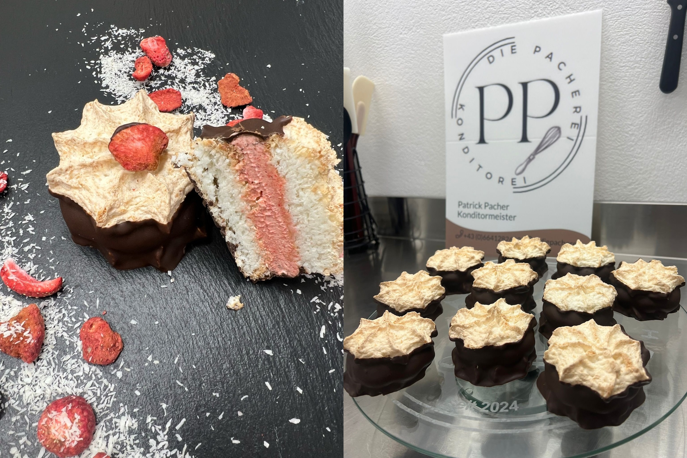 Einer der am 13. Mai 2025 ausgezeichnet ist unser Gössendorfer Konditormeister Patrick Pacher mit seiner DiePacherei – bekannt für die besten Kokoskuppeln weit und breit und vielen anderen verführerischen süßen Köstlichkeiten bis zum Süßigkeitenbuffet für Hochzeiten und Veranstaltungen.