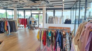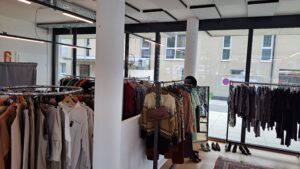 Dieser Laden fördert das Prinzip des Gebens und Nehmens ohne Geld. Zusätzlich werden monatlich Reparatur- und Nähaktionen sowie Workshops angeboten.