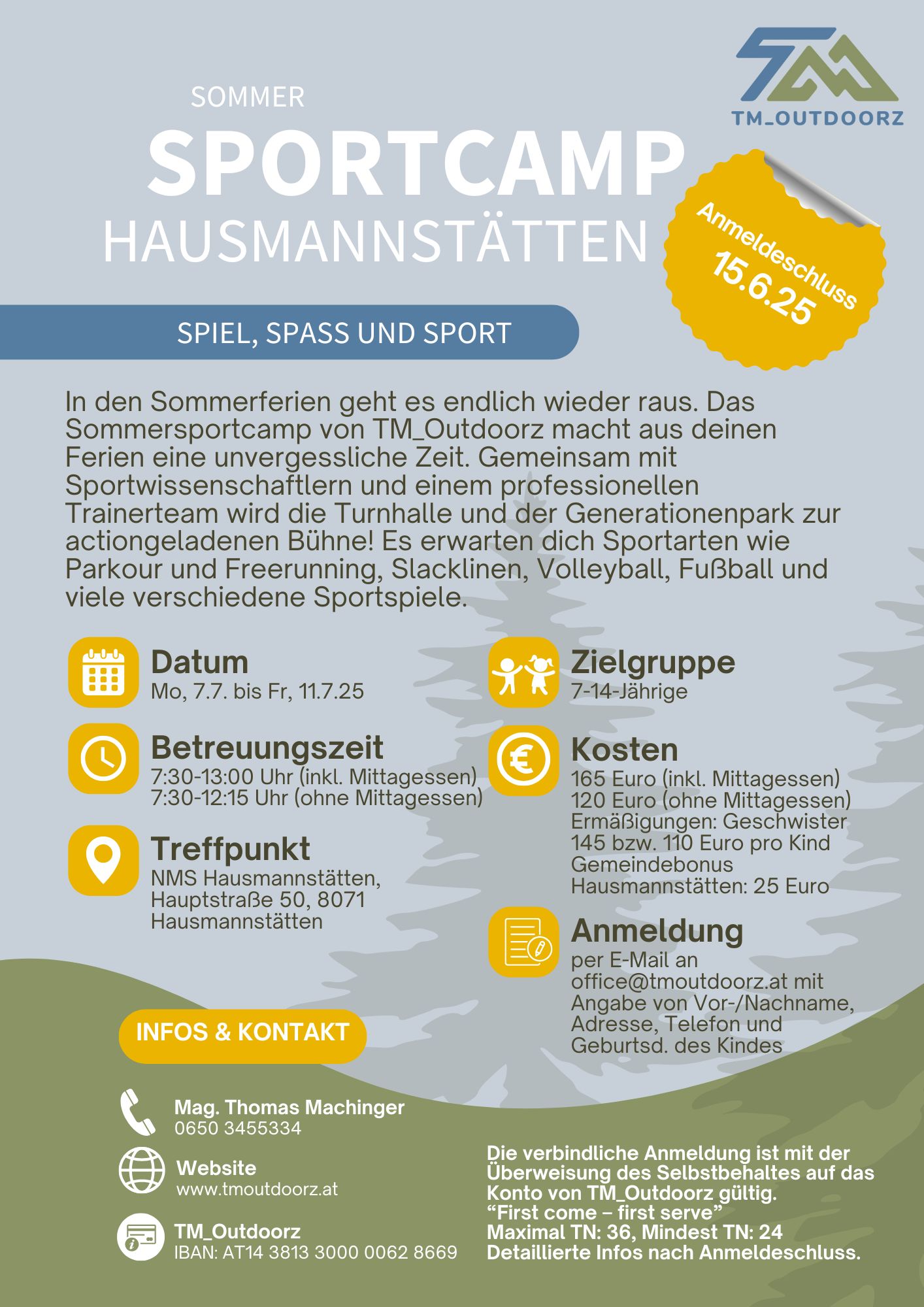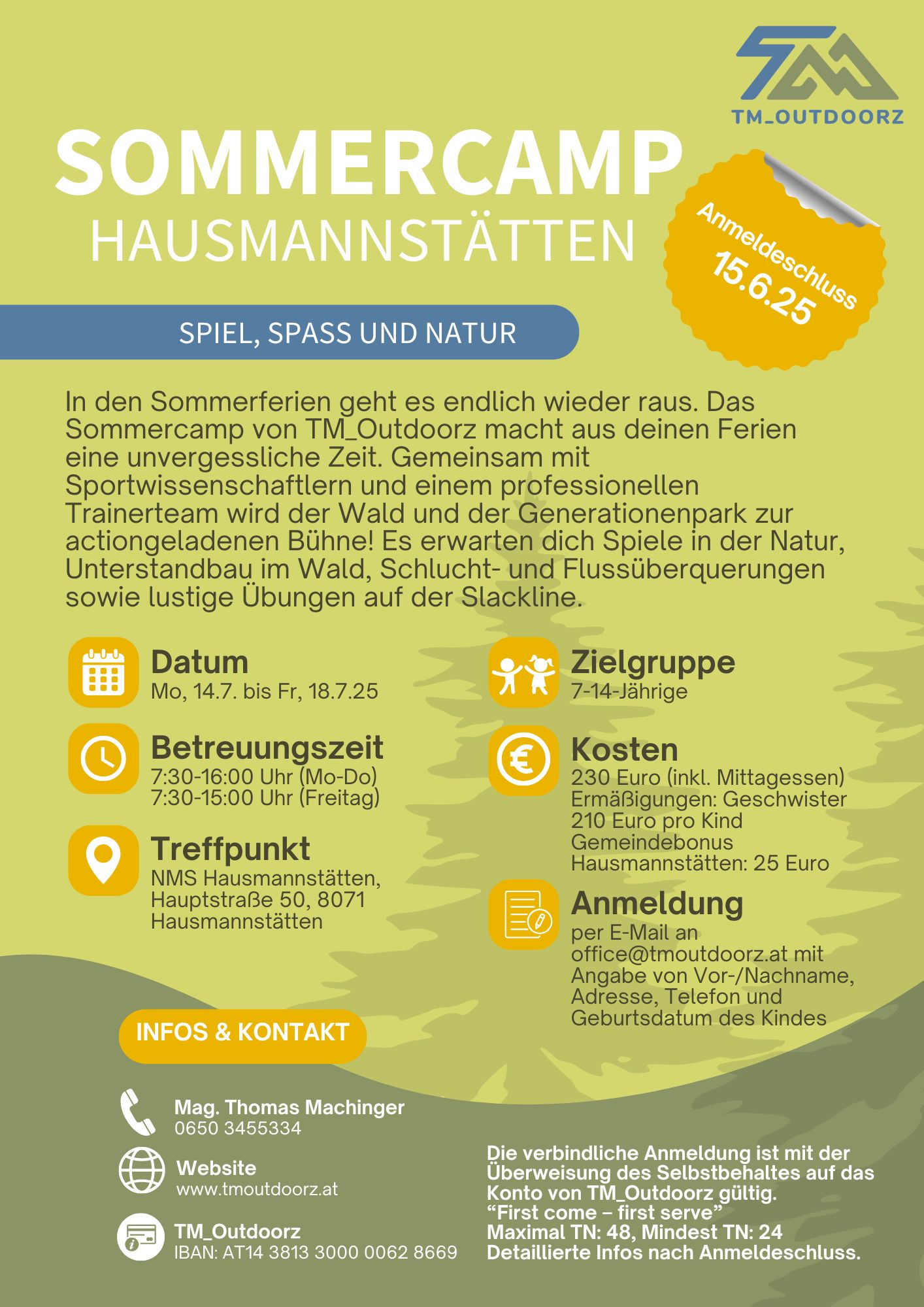 - Sommercamp in Hausmannstätten (TM Outdoorz) 07-11.7.2025 & 14.-18.07.2025