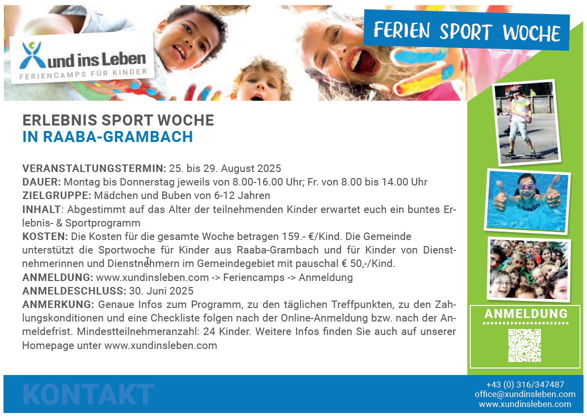 - Xund ins Leben Erlebnis Sport Woche in Raaba-Grambach 25.-29. August 2025