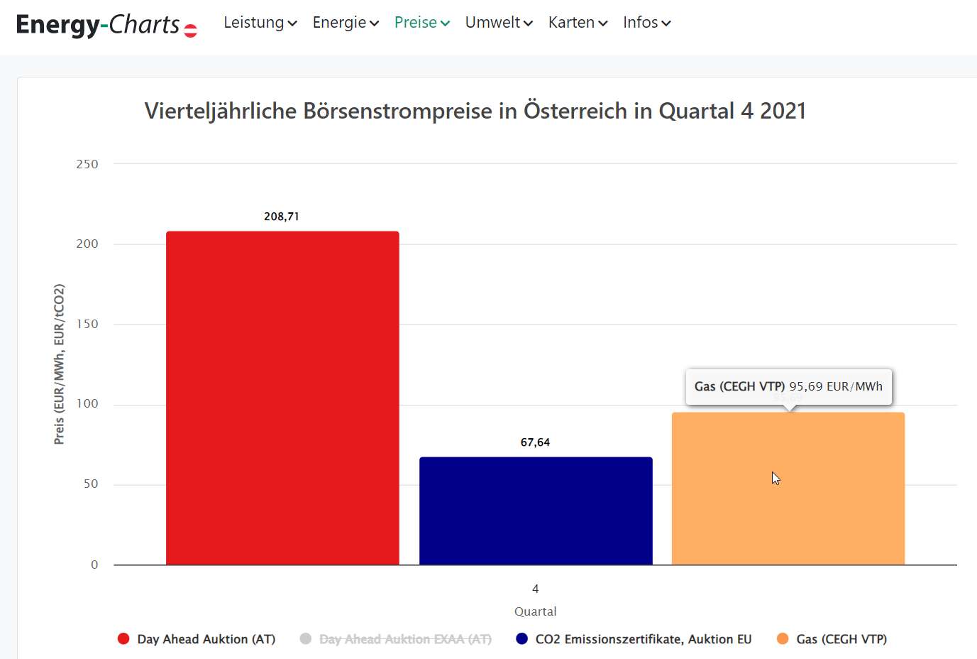 Explosion der Gas- und Strompreise im 4. Quartal 2021 vor dem Angriffskrieg in Österreich bei Gas auf 9,5 ct/kWh Einkaufspreis bereits in den letzten Monaten von 2021 und einem Strom Energie Einkaufspreis von über 20 ct/kWh netto.