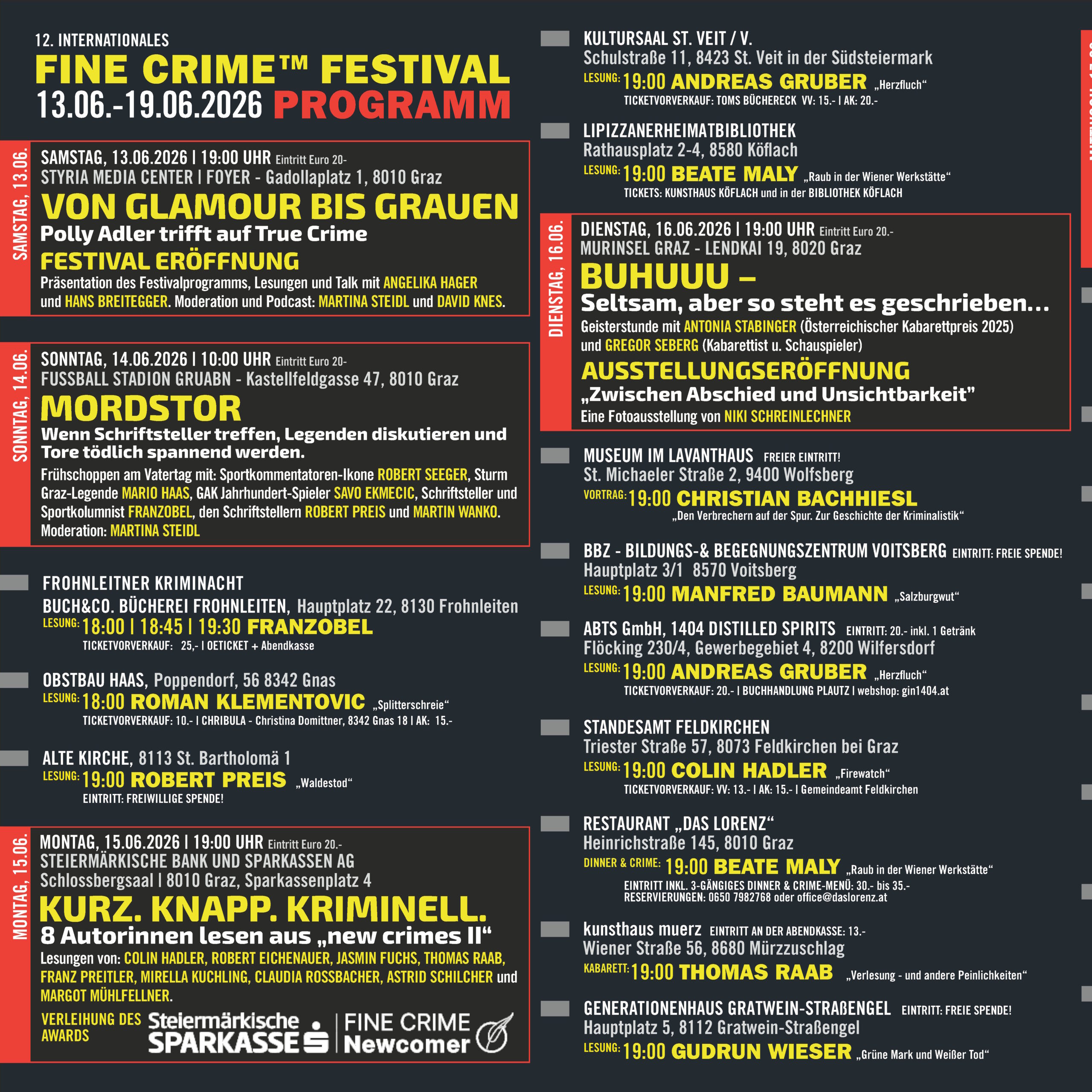 12. INTERNATIONALES FINE CRIME FESTIVAL 2026 (Erlebnisregion Graz)