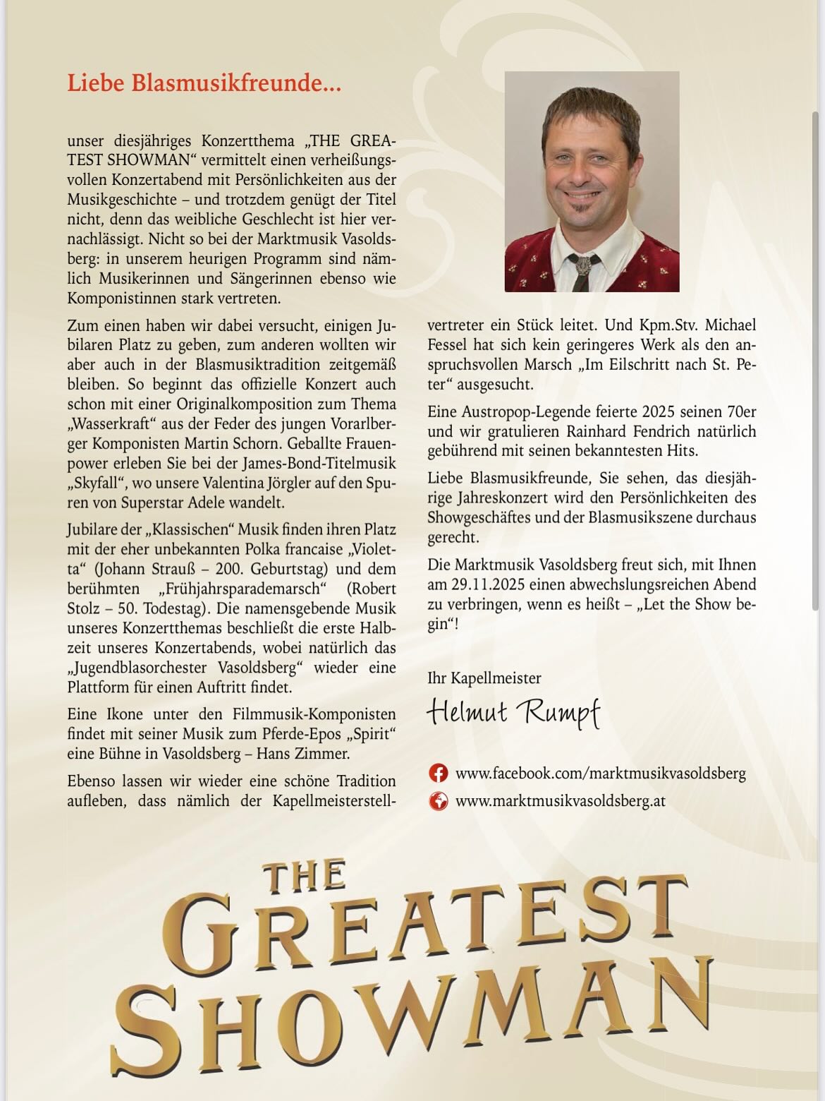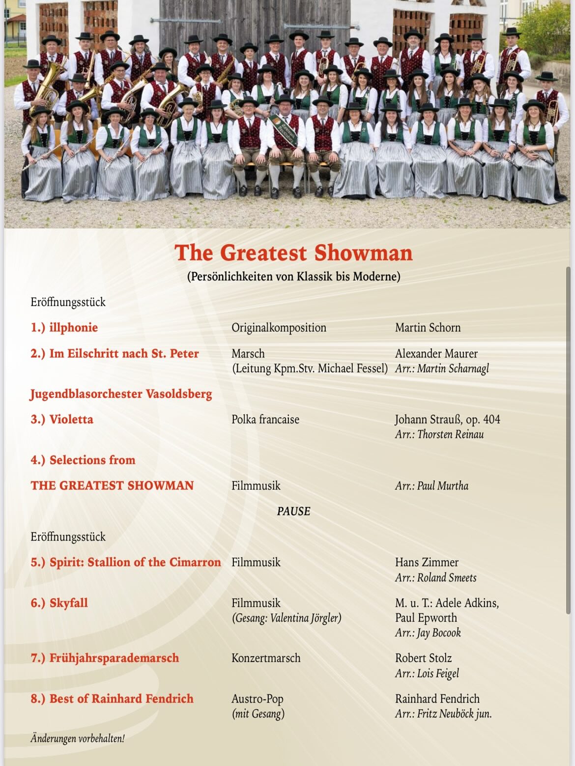 Jahreskonzert der Marktmusik Vasoldsberg – The Greatest Showman