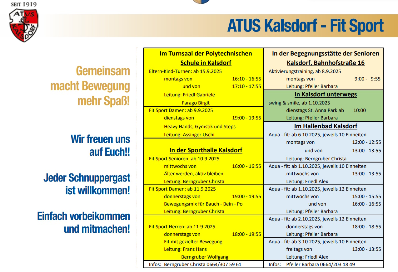 Vom Verein ATUS Kalsdorf gibt es auch Bewegungsangebote im Hallenbad Kalsdorf direkt zum Saisonstart: