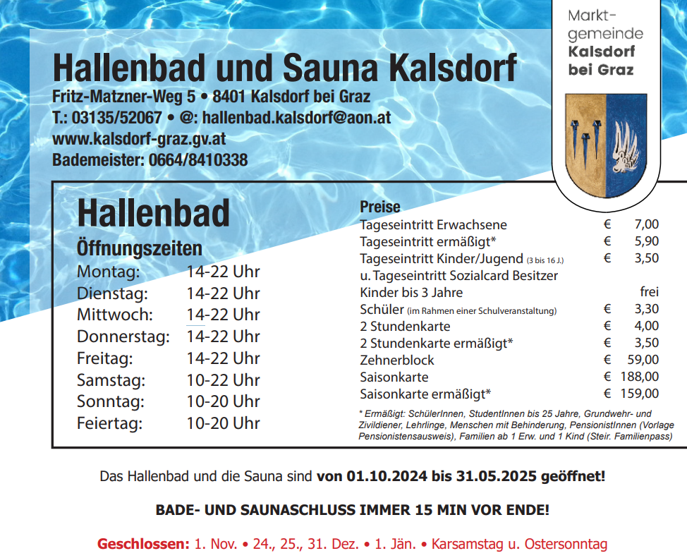 Saisonstart Hallenbad Kalsdorf (1. Oktober 2025)