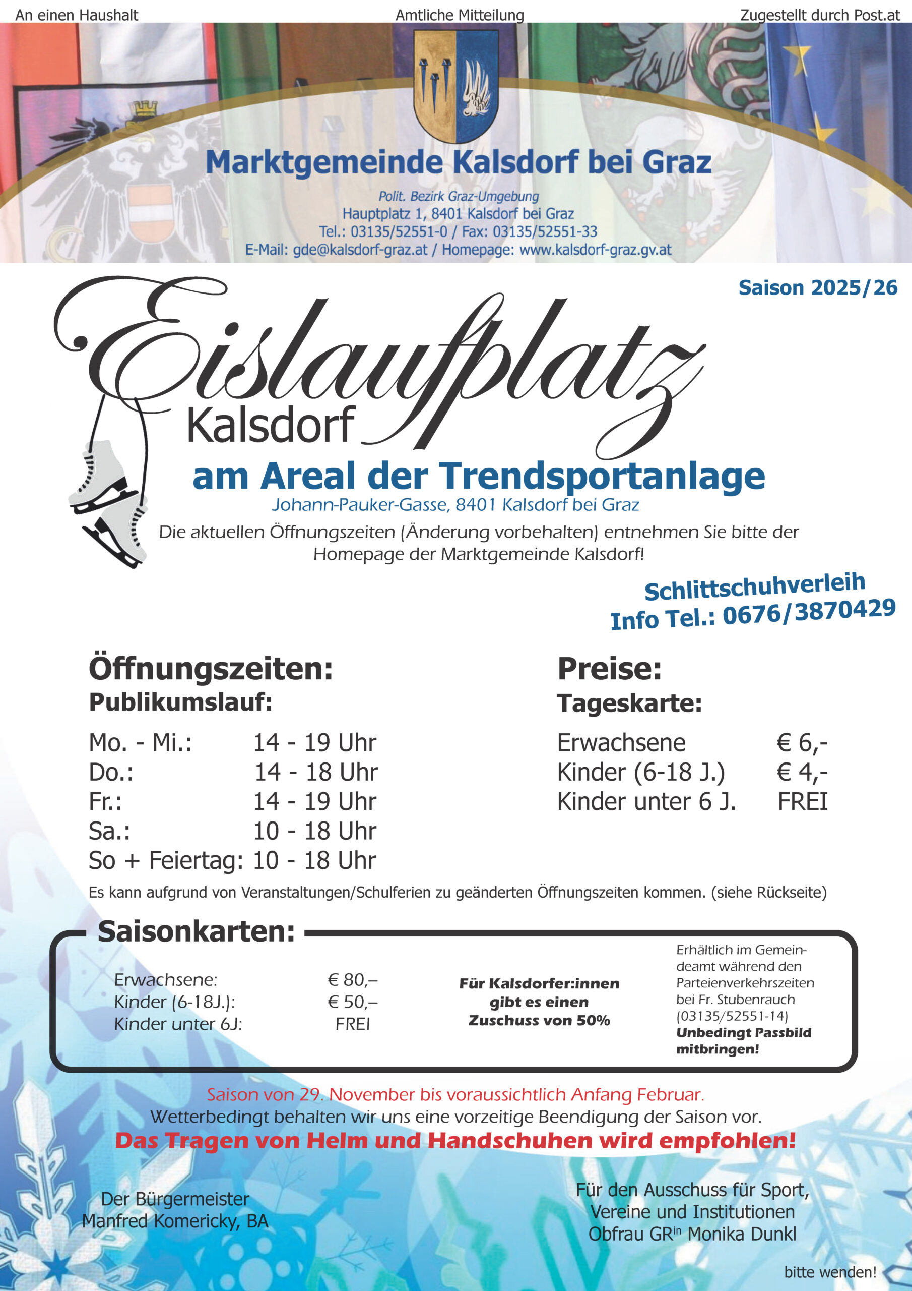 Start Eislaufen in Kalsdorf Saison 2025/26