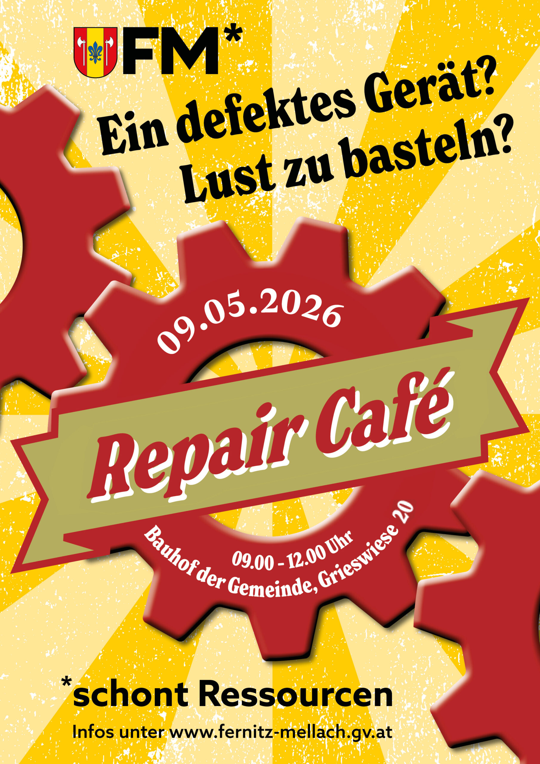 REPAIR CAFE in Fernitz-Mellach 09.05.2026 - 09:00 Uhr Bauhof Fernitz-Mellach, Grieswiese 20