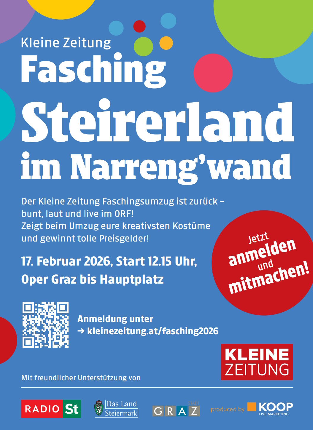 Am Sonntag, den 15. Februar 2026, laden Bürgermeister Gerald Wonner und die Gössendorfer Gemeinderätinnen und Gemeinderäte wieder zum beliebten gemeinsamen Gössendorfer Kinderfasching. Neben gratis Krapfen...