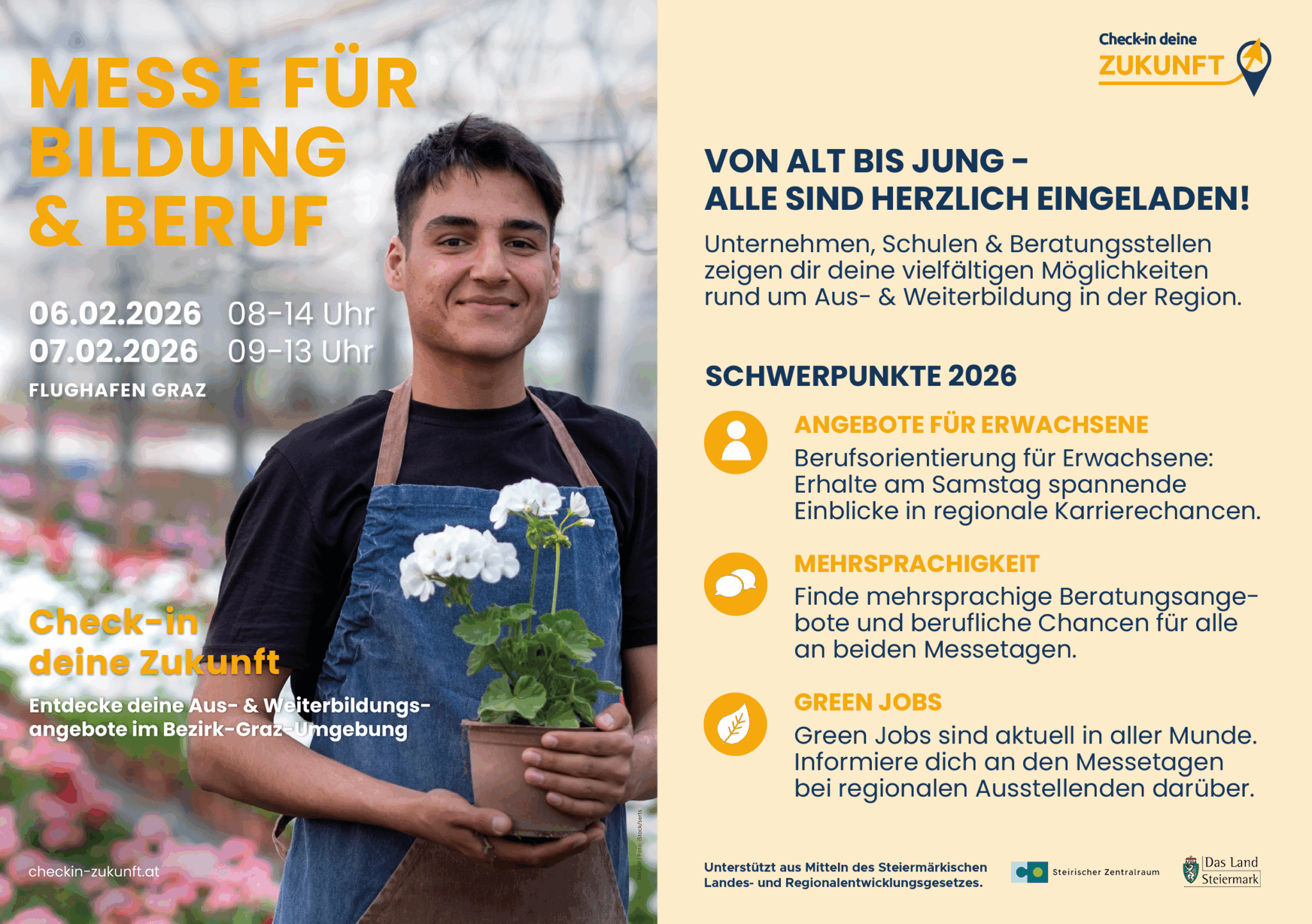Check-in deine Zukunft... …ist der Titel der zweitägigen Veranstaltung, die vom Regionalmanagement Steirischer Zentralraum als Projektträger umgesetzt und durch Mittel des Regionalressorts des Landes Steiermark...
