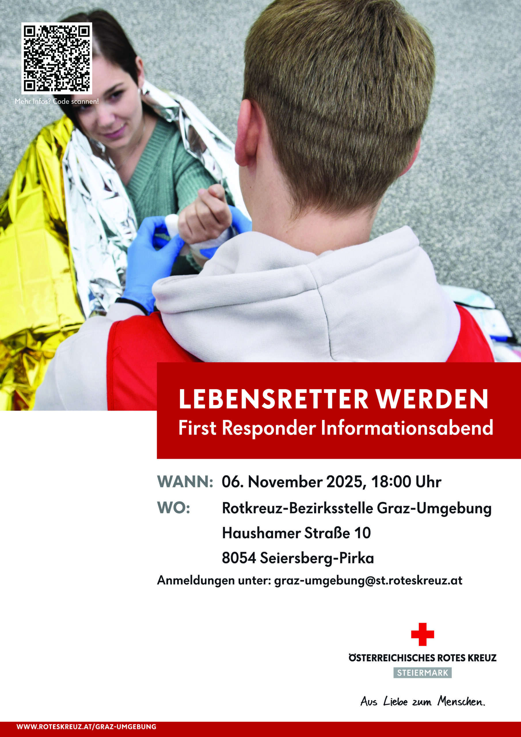 Einladung zum Informationsabend: First Responder-Ausbildung Im Notfall zählt jede Minute – genau hier setzen die First Responder des Roten Kreuzes an. Sie sind speziell ausgebildete...