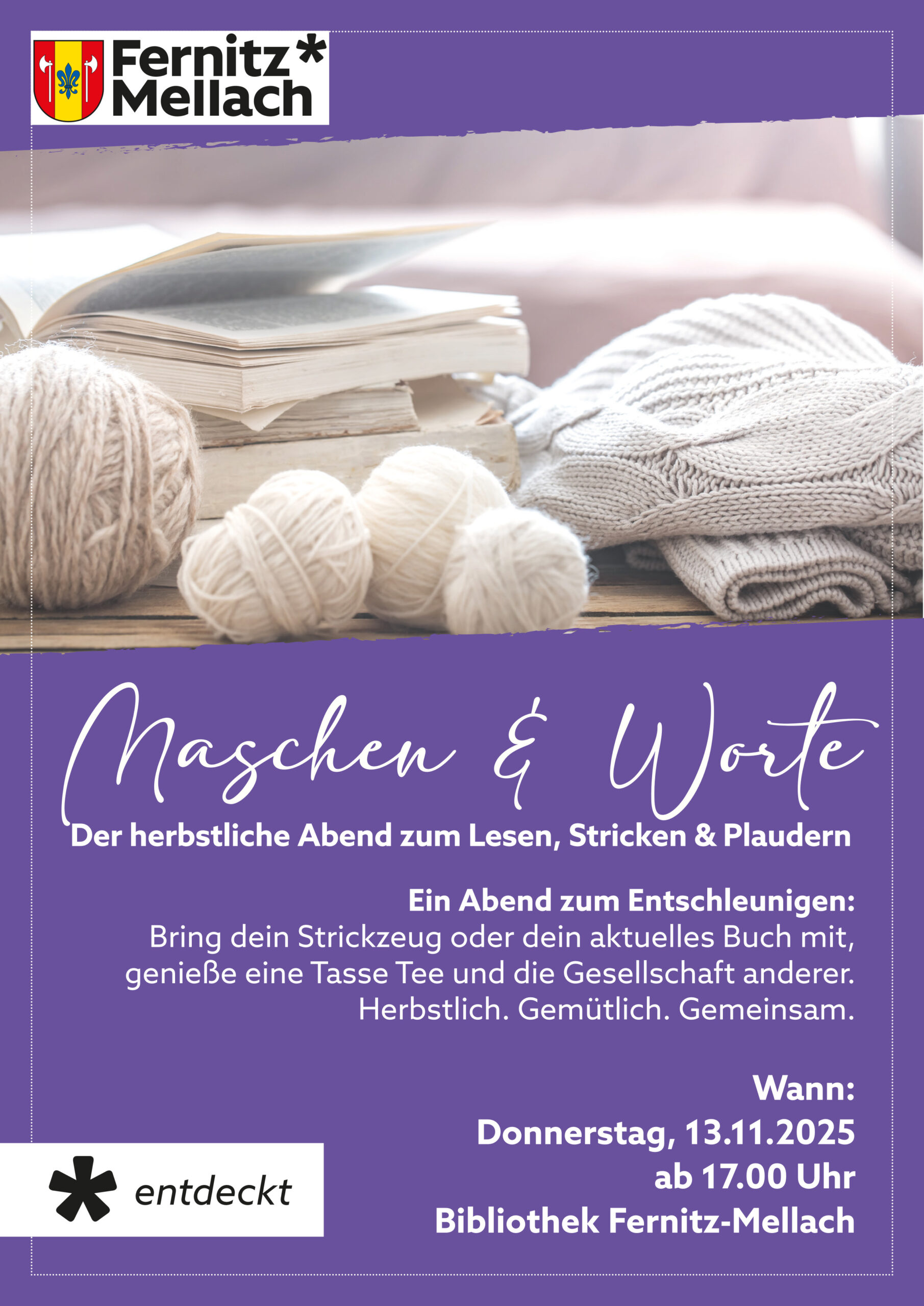 Der herbstliche Abend zum Lesen, Stricken & Plaudern Ein Abend zum Entschleunigen Bring dein Strickzeug oder dein aktuelles Buch mit, genieße eine Tasse Tee und...