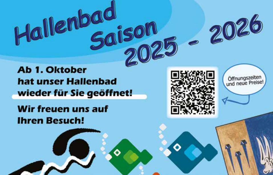 Ab 1. Oktober 2025 öffnet das Hallenbad wieder - die ersten Tage noch nach den alten Preisen, diese werden die nächten Tage beschlossen. Das Hallenbad...