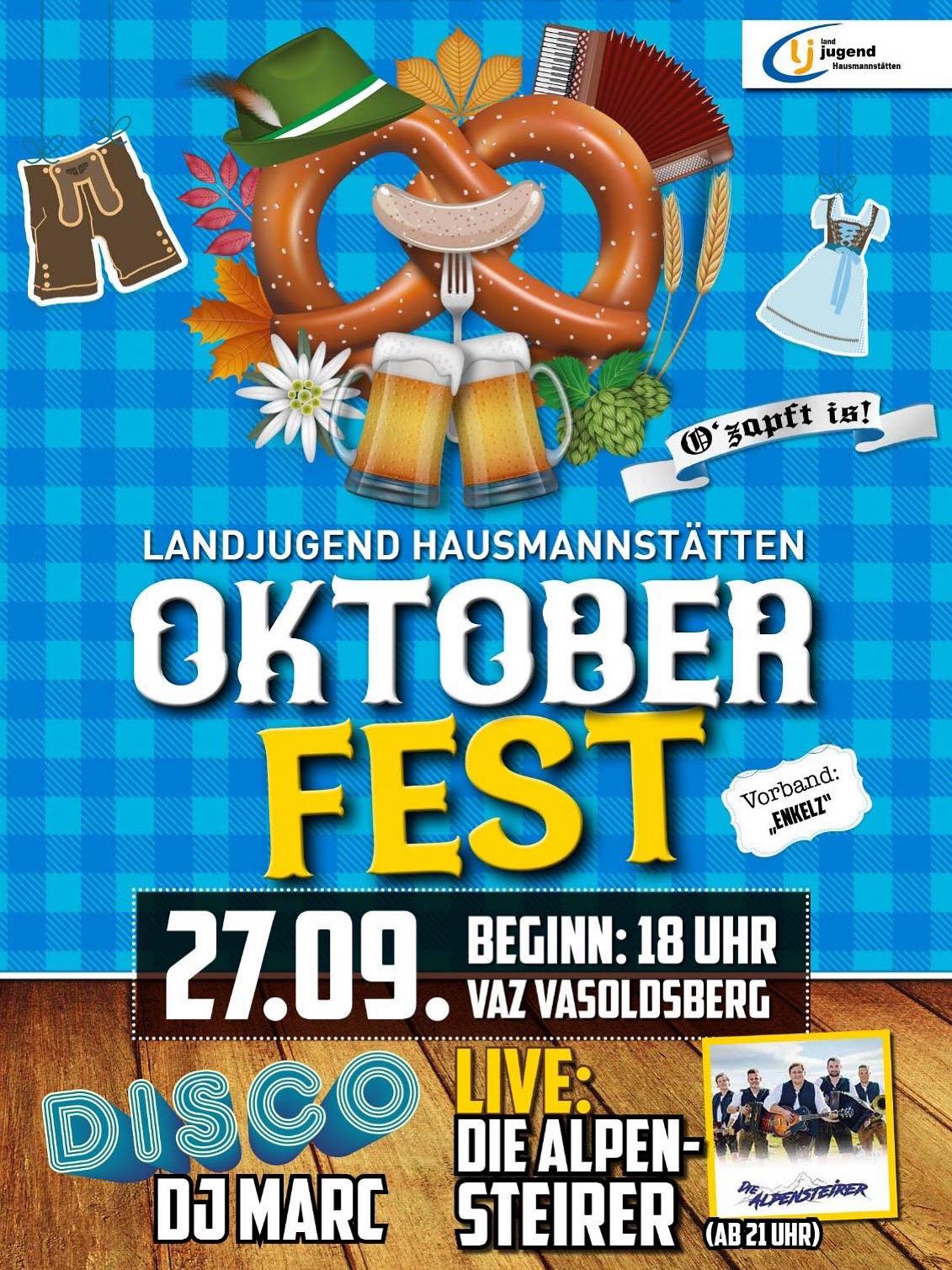 Die Landjugend Hausmannstätten lädt herzlich ein zum großen OKTOBERFEST 2025! MZH Vasoldsberg 27. September Beginn: 18:00 Uhr Disco & Stimmung pur! LIVE ab 21:00 Uhr:...