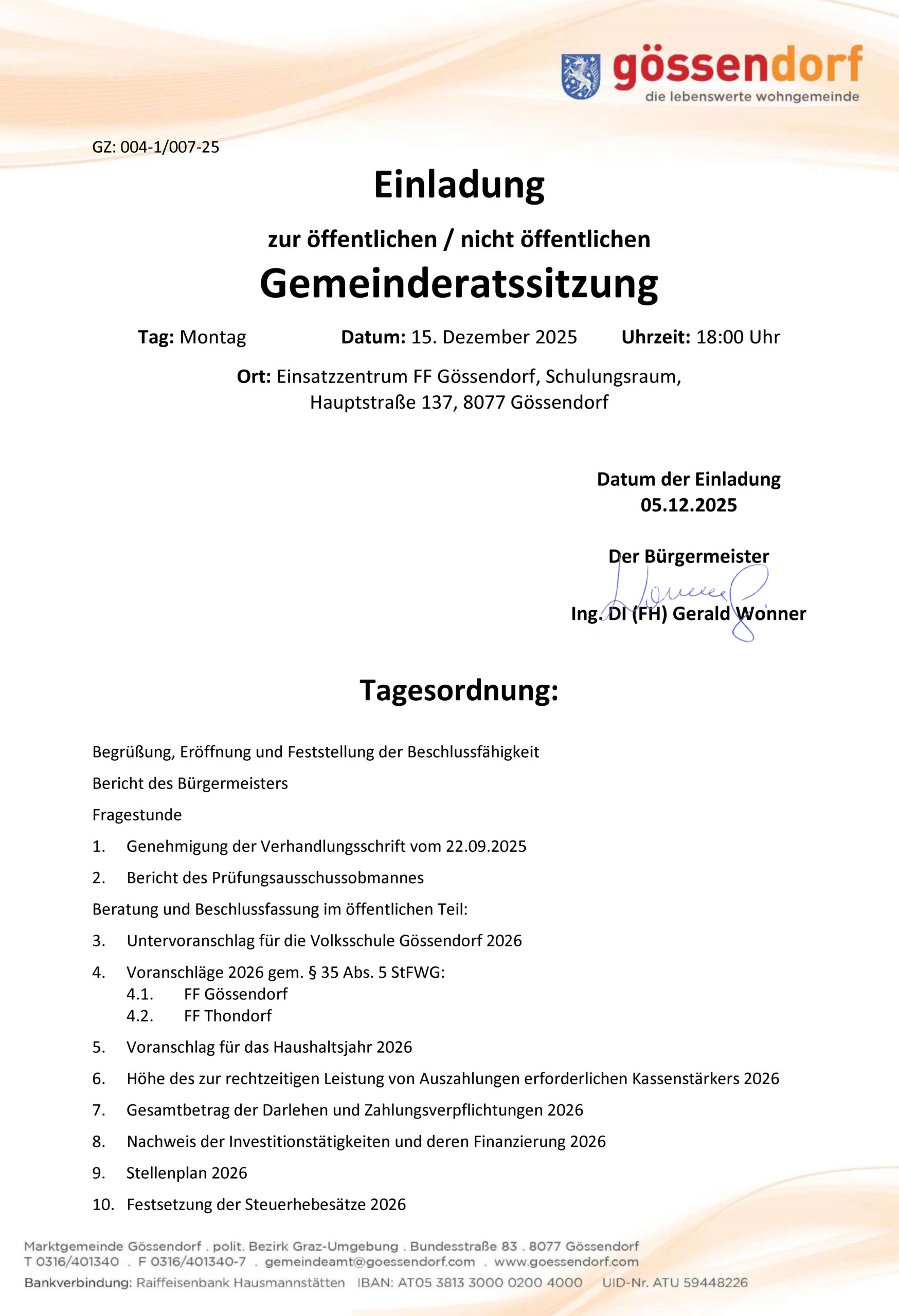 Die Marktgemeinde Gössendorf lädt Sie auch in diesem Jahr wieder herzlich zum Gössendorfer Christkindlmarkt am Samstag, 29. November 2025 und 6. Dezember 2025 jeweils ab 14:00 Uhr beim Sportzentrum Gössendorf... |